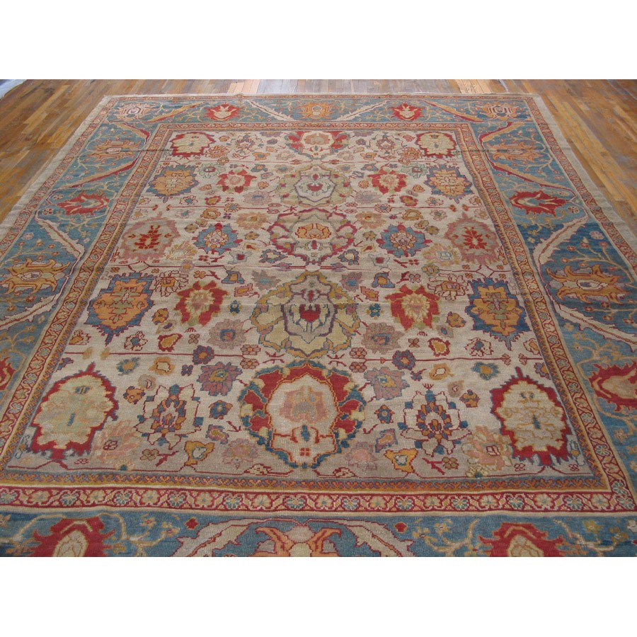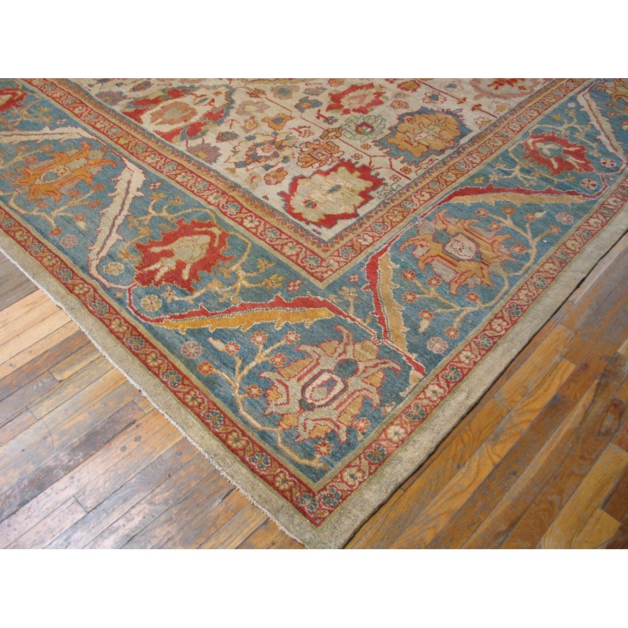 DescriptionSultanabadArak province in western Iran encompasses the town of Sultanabad and various satellite villages, all of which weave for export:the sarouk, Mahal and MushKabad. The latter two grades comprise the sultanabad production. Virtually all are large carpets, up to 16 x 25, with overall, or medallions on decorated or open fields, in soft to bright colors on a cotton foundation, the pile is lowish. The design corpus includes the ever popular Herati, the Harshang palmette motif, rosettes and arabesques, small repeated medallions, etc. The weave varies from coarse to medium. Today, the soft colored pieces with bold patterns are particularly favored. Prices range widely, low for commercial pieces 50 years old, astronomical for light colored Zieglers (see below). | |