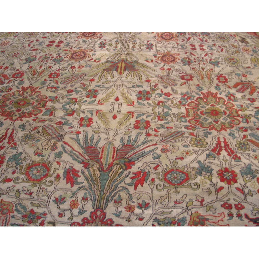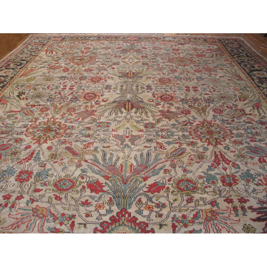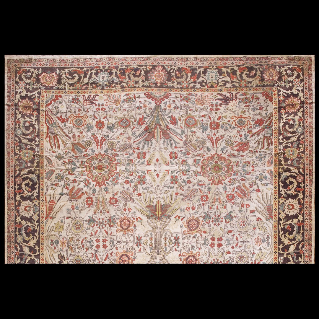 DescriptionSultanabadArak province in western Iran encompasses the town of Sultanabad and various satellite villages, all of which weave for export:the sarouk, Mahal and MushKabad. The latter two grades comprise the sultanabad production. Virtually all are large carpets, up to 16 x 25, with overall, or medallions on decorated or open fields, in soft to bright colors on a cotton foundation, the pile is lowish. The design corpus includes the ever popular Herati, the Harshang palmette motif, rosettes and arabesques, small repeated medallions, etc. The weave varies from coarse to medium. Today, the soft colored pieces with bold patterns are particularly favored. Prices range widely, low for commercial pieces 50 years old, astronomical for light colored Zieglers (see below). | |