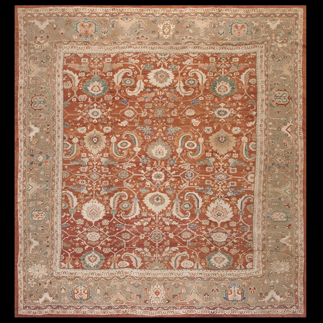DescriptionSultanabadArak province in western Iran encompasses the town of Sultanabad and various satellite villages, all of which weave for export:the sarouk, Mahal and MushKabad. The latter two grades comprise the sultanabad production. Virtually all are large carpets, up to 16 x 25, with overall, or medallions on decorated or open fields, in soft to bright colors on a cotton foundation, the pile is lowish. The design corpus includes the ever popular Herati, the Harshang palmette motif, rosettes and arabesques, small repeated medallions, etc. The weave varies from coarse to medium. Today, the soft colored pieces with bold patterns are particularly favored. Prices range widely, low for commercial pieces 50 years old, astronomical for light colored Zieglers (see below). | |