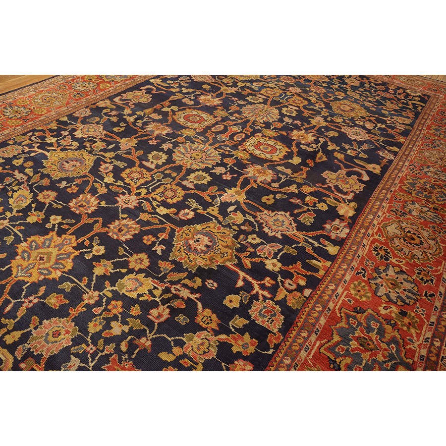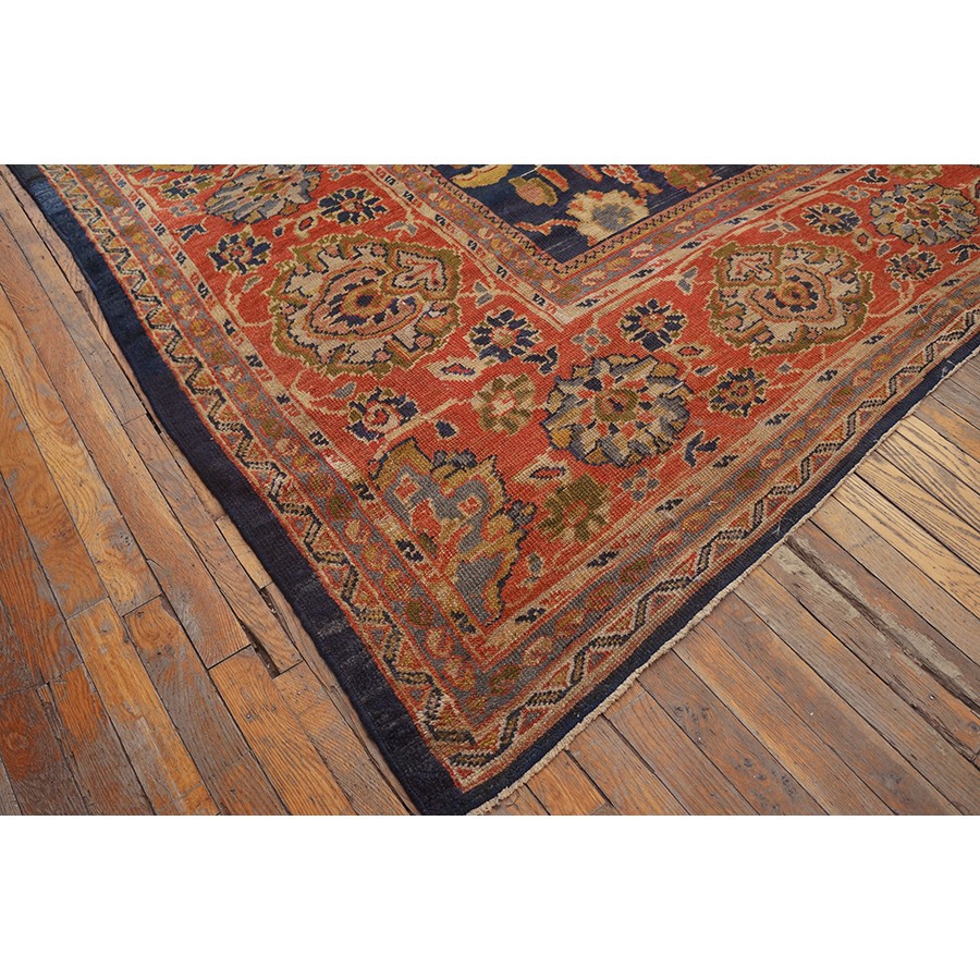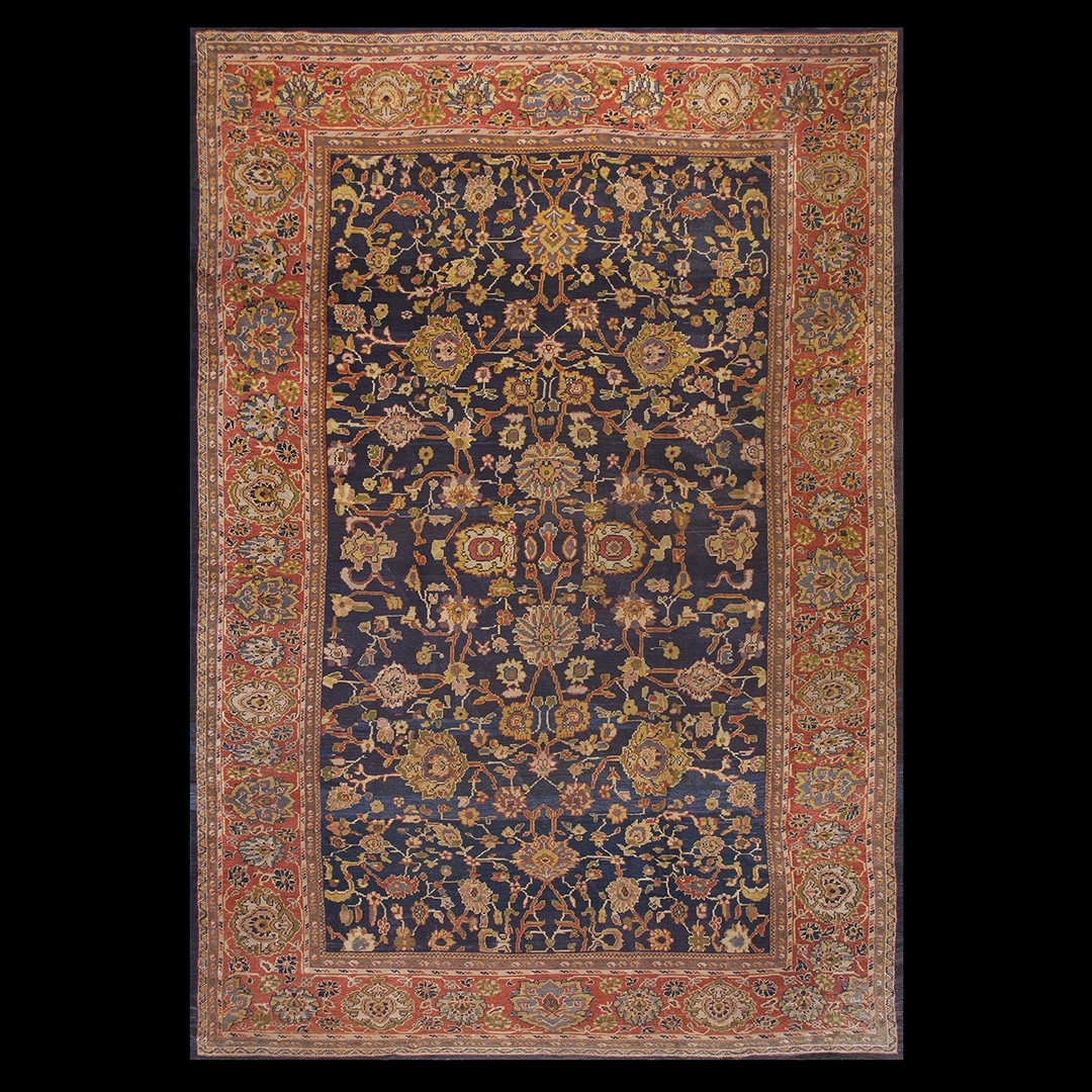 DescriptionSultanabadArak province in western Iran encompasses the town of Sultanabad and various satellite villages, all of which weave for export:the sarouk, Mahal and MushKabad. The latter two grades comprise the sultanabad production. Virtually all are large carpets, up to 16 x 25, with overall, or medallions on decorated or open fields, in soft to bright colors on a cotton foundation, the pile is lowish. The design corpus includes the ever popular Herati, the Harshang palmette motif, rosettes and arabesques, small repeated medallions, etc. The weave varies from coarse to medium. Today, the soft colored pieces with bold patterns are particularly favored. Prices range widely, low for commercial pieces 50 years old, astronomical for light colored Zieglers (see below). | |