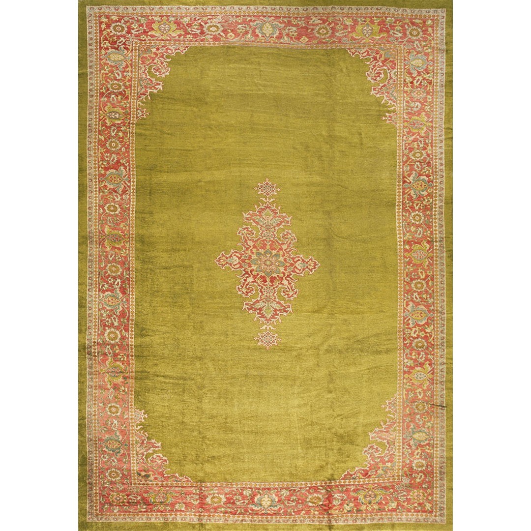 DescriptionSultanabadArak province in western Iran encompasses the town of Sultanabad and various satellite villages, all of which weave for export:the sarouk, Mahal and MushKabad. The latter two grades comprise the sultanabad production. Virtually all are large carpets, up to 16 x 25, with overall, or medallions on decorated or open fields, in soft to bright colors on a cotton foundation, the pile is lowish. The design corpus includes the ever popular Herati, the Harshang palmette motif, rosettes and arabesques, small repeated medallions, etc. The weave varies from coarse to medium. Today, the soft colored pieces with bold patterns are particularly favored. Prices range widely, low for commercial pieces 50 years old, astronomical for light colored Zieglers (see below). | |