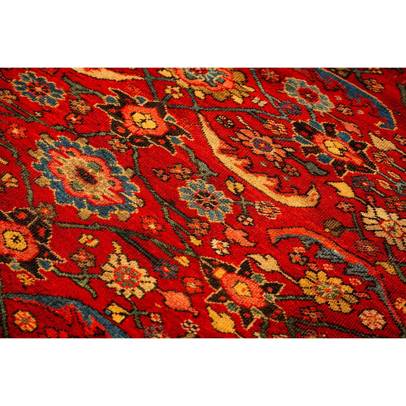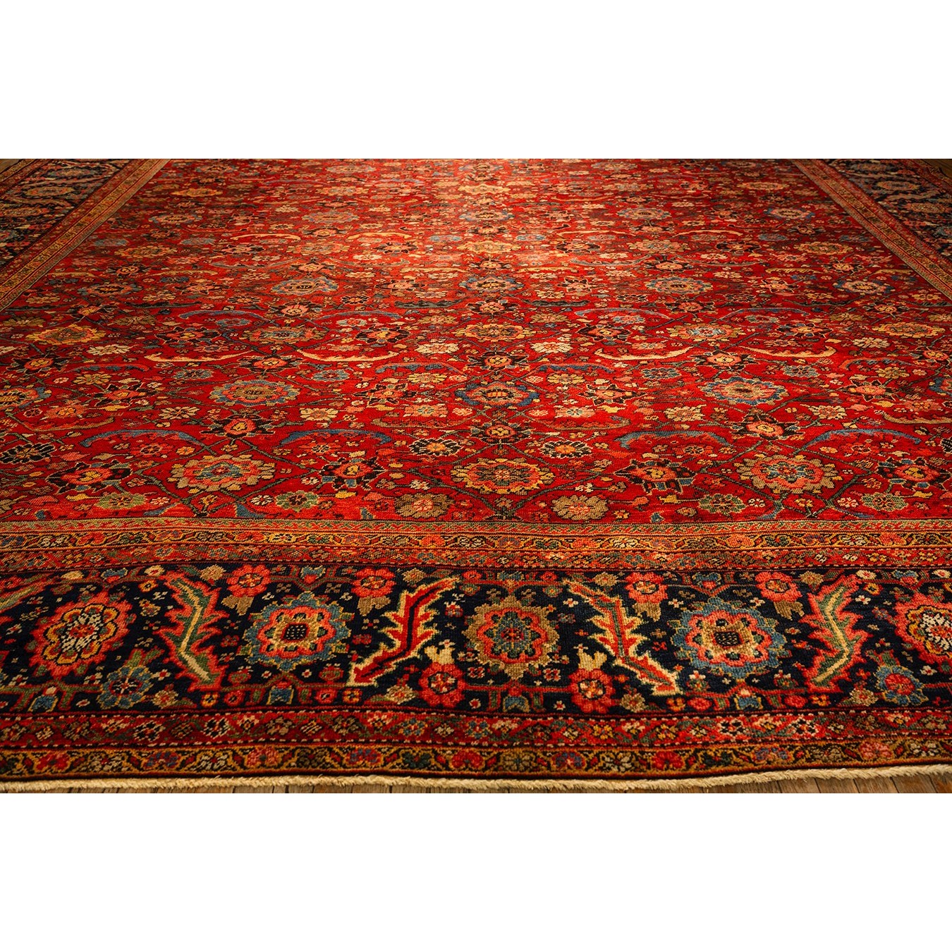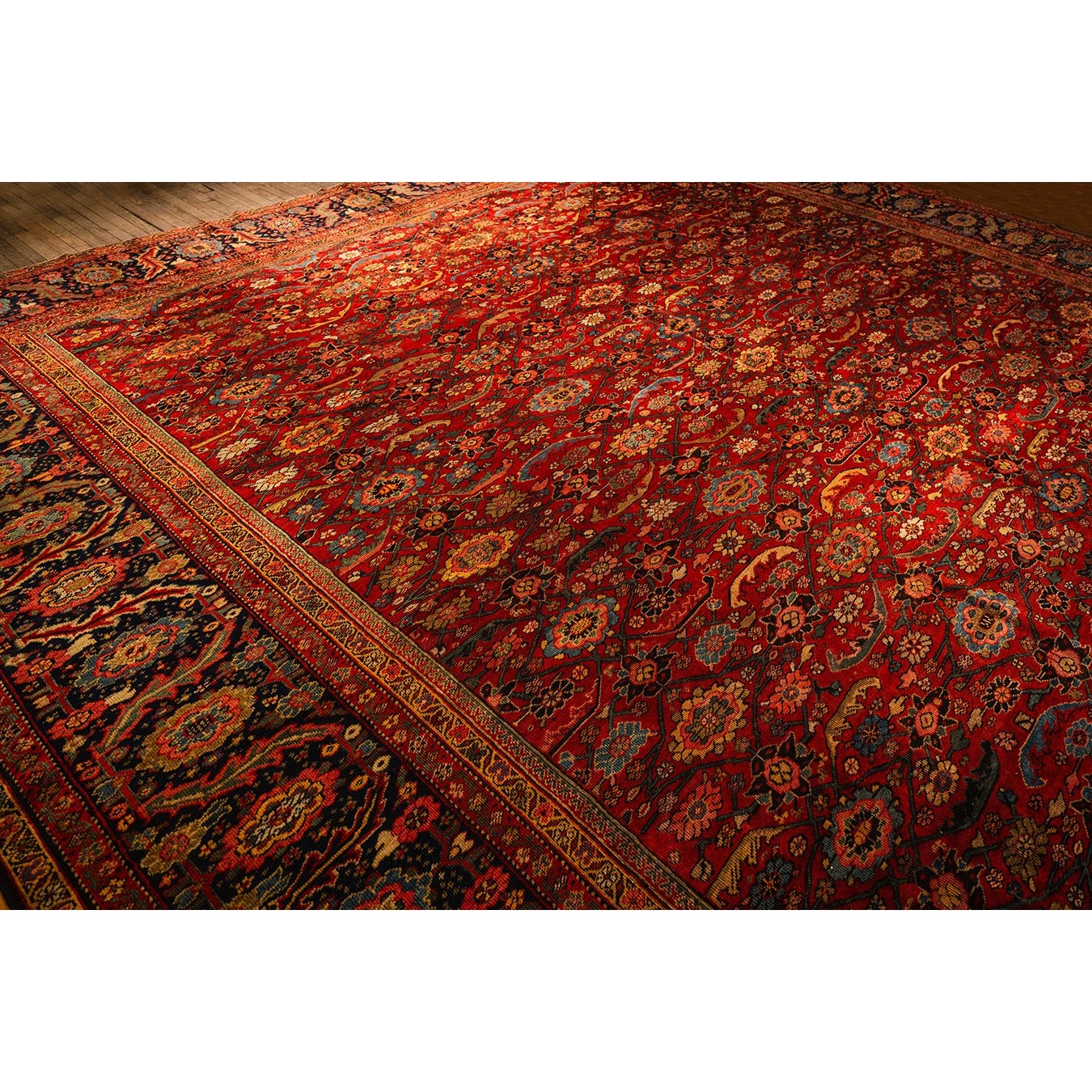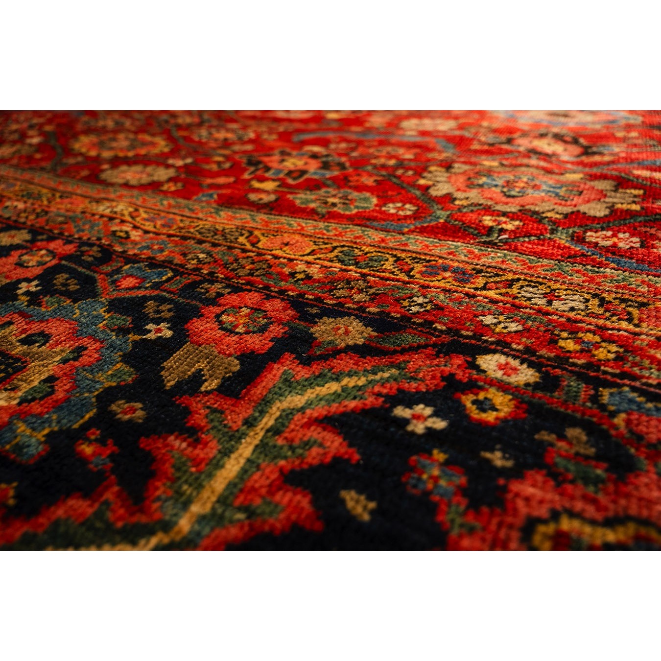 DescriptionSultanabadArak province in western Iran encompasses the town of Sultanabad and various satellite villages, all of which weave for export:the sarouk, Mahal and MushKabad. The latter two grades comprise the sultanabad production. Virtually all are large carpets, up to 16 x 25, with overall, or medallions on decorated or open fields, in soft to bright colors on a cotton foundation, the pile is lowish. The design corpus includes the ever popular Herati, the Harshang palmette motif, rosettes and arabesques, small repeated medallions, etc. The weave varies from coarse to medium. Today, the soft colored pieces with bold patterns are particularly favored. Prices range widely, low for commercial pieces 50 years old, astronomical for light colored Zieglers (see below). | |