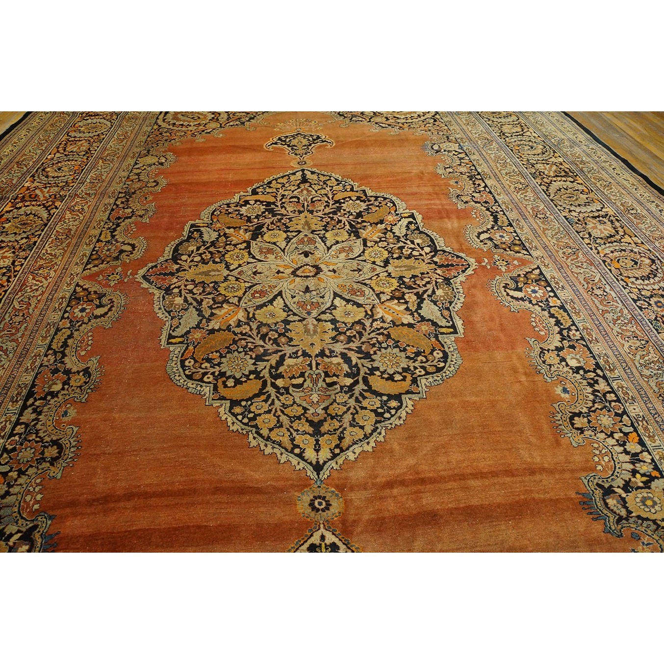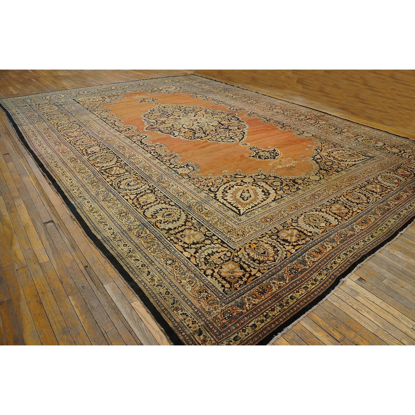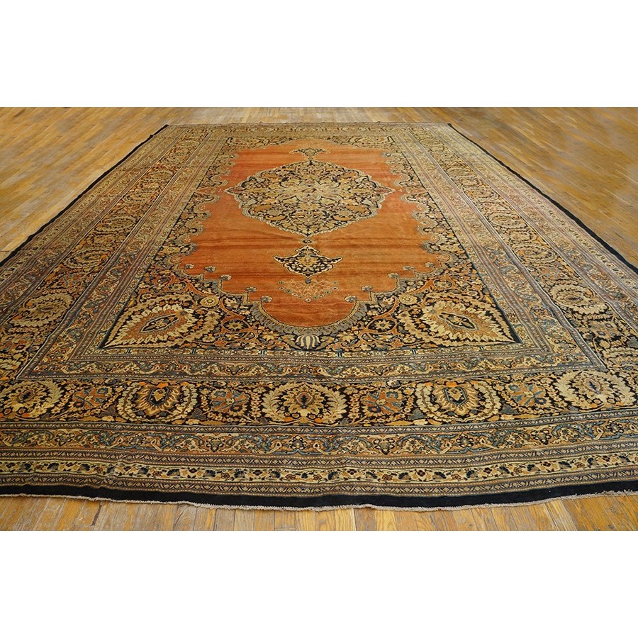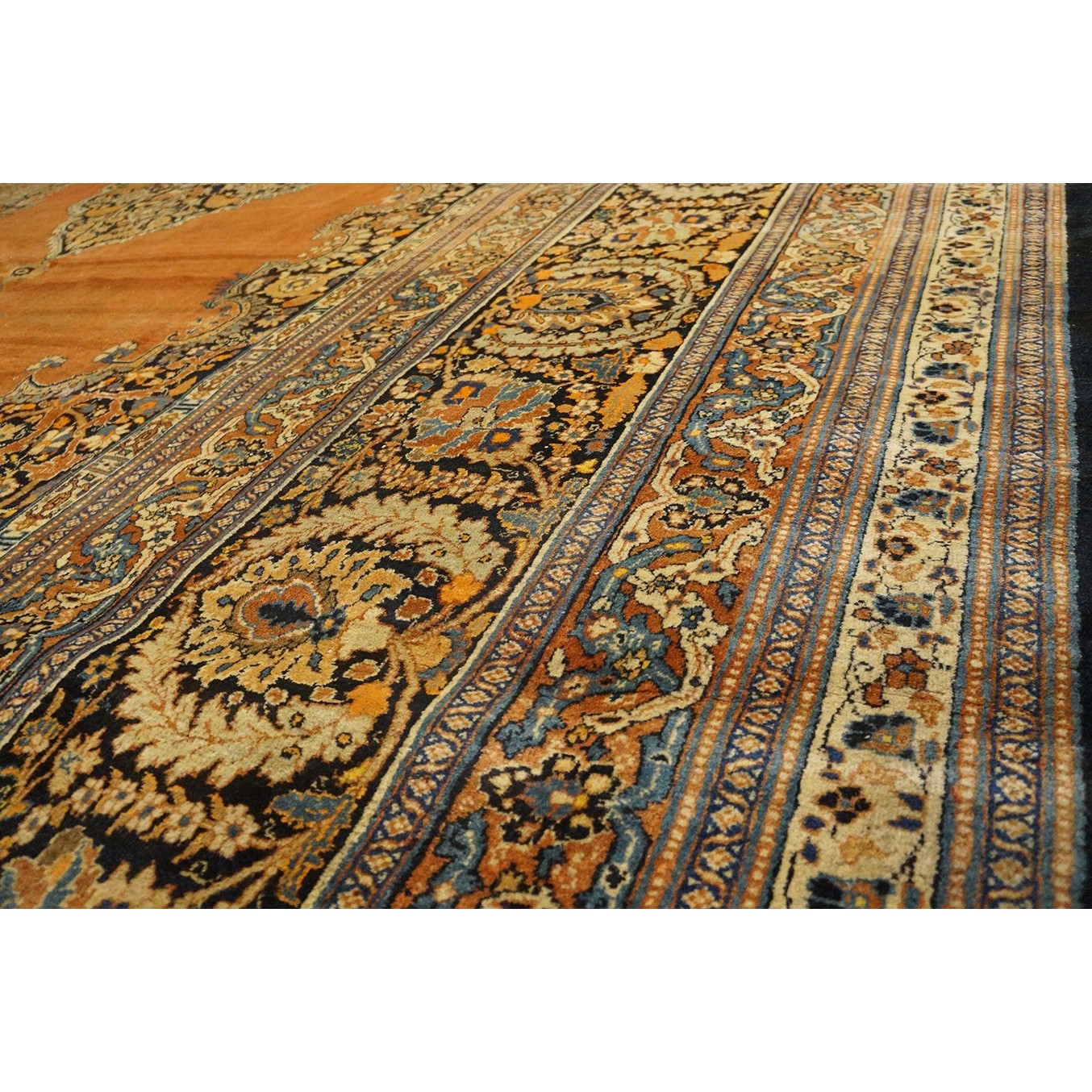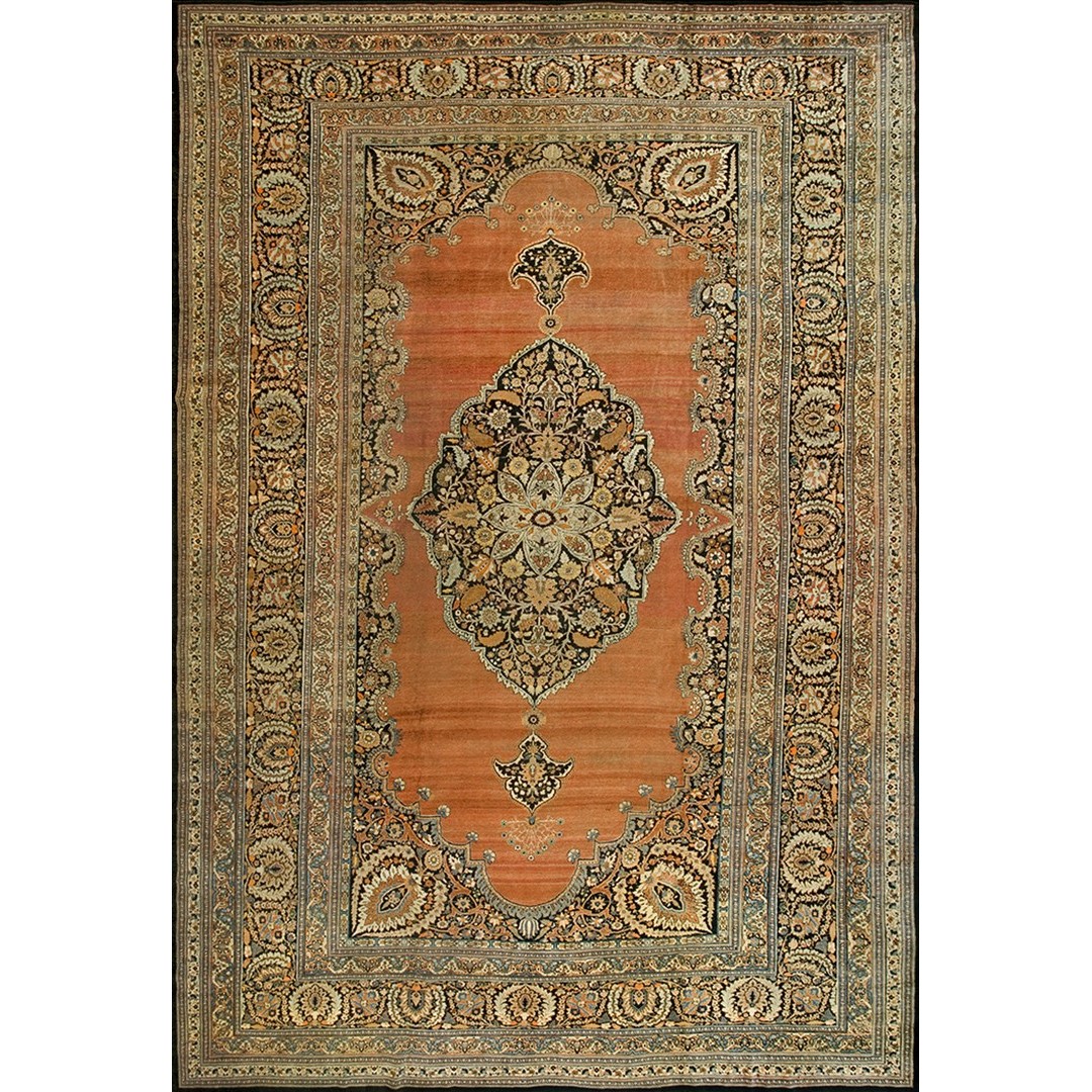 DescriptionTabrizTabriz is the seat of Persian Azerbaijan Province, a large industrial and commercial city with a long history as a past national capital and as an artistic center. The weaving industry was revived there in the 19th century and is carried out in factories where rugs are closely supervised. Quality control is a feature of Tabriz pieces and various grades up to very fine, extremely large carpets may be had. When the colors have mellowed and condition is good, they are extremely valuable and popular with decorators every where. Medallion and overall patterns are woven equally successfully. Silk carpets were popular from this area before 1930 and a few are still made. Sizes range from 2 x 3 to ones 20 x 30. Prices are moderate for the lower grades and upwards. | |