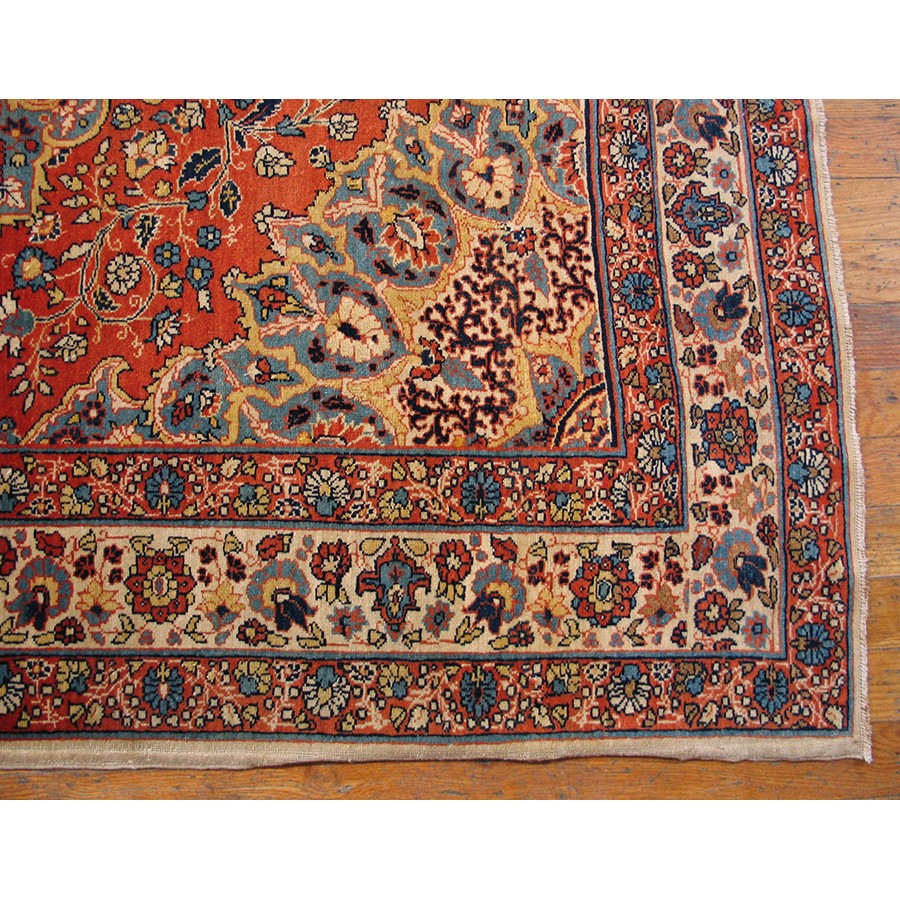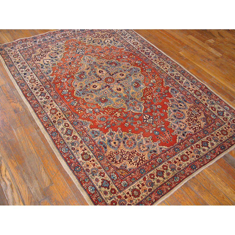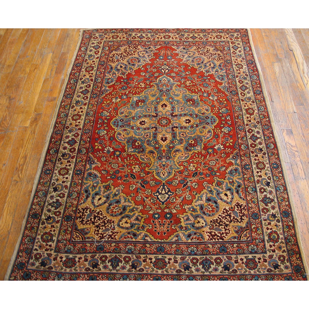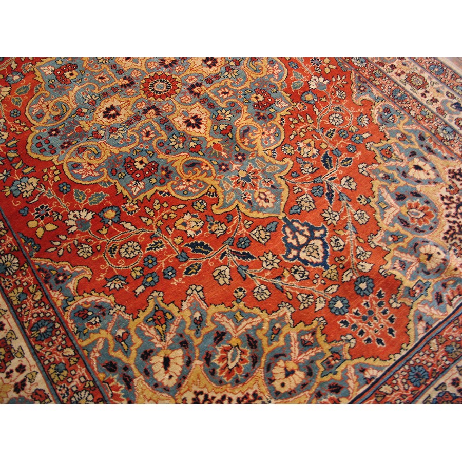 DescriptionTabrizTabriz is the seat of Persian Azerbaijan Province, a large industrial and commercial city with a long history as a past national capital and as an artistic center. The weaving industry was revived there in the 19th century and is carried out in factories where rugs are closely supervised. Quality control is a feature of Tabriz pieces and various grades up to very fine, extremely large carpets may be had. When the colors have mellowed and condition is good, they are extremely valuable and popular with decorators every where. Medallion and overall patterns are woven equally successfully. Silk carpets were popular from this area before 1930 and a few are still made. Sizes range from 2 x 3 to ones 20 x 30. Prices are moderate for the lower grades and upwards. | |