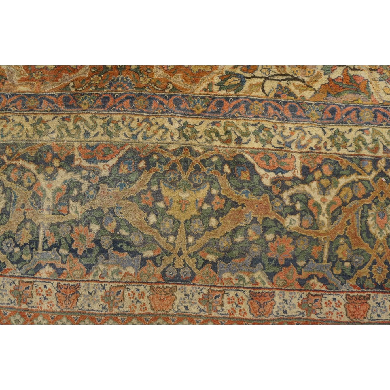 DescriptionTabrizTabriz is the seat of Persian Azerbaijan Province, a large industrial and commercial city with a long history as a past national capital and as an artistic center. The weaving industry was revived there in the 19th century and is carried out in factories where rugs are closely supervised. Quality control is a feature of Tabriz pieces and various grades up to very fine, extremely large carpets may be had. When the colors have mellowed and condition is good, they are extremely valuable and popular with decorators every where. Medallion and overall patterns are woven equally successfully. Silk carpets were popular from this area before 1930 and a few are still made. Sizes range from 2 x 3 to ones 20 x 30. Prices are moderate for the lower grades and upwards. | |