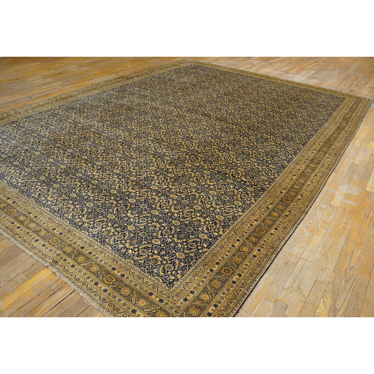 Tabriz is the seat of Persian Azerbaijan Province, a large industrial and commercial city with a long history as a past national capital and as an artistic center. The weaving industry was revived there in the 19th century and is carried out in factories where rugs are closely supervised. Quality control is a feature of Tabriz pieces and various grades up to very fine, extremely large carpets may be had. When the colors have mellowed and condition is good, they are extremely valuable and popular with decorators every where. Medallion and overall patterns are woven equally successfully. Silk carpets were popular from this area before 1930 and a few are still made. Sizes range from 2’ x 3’ to ones 20’ x 30’. Prices are moderate for the lower grades and upwards.
