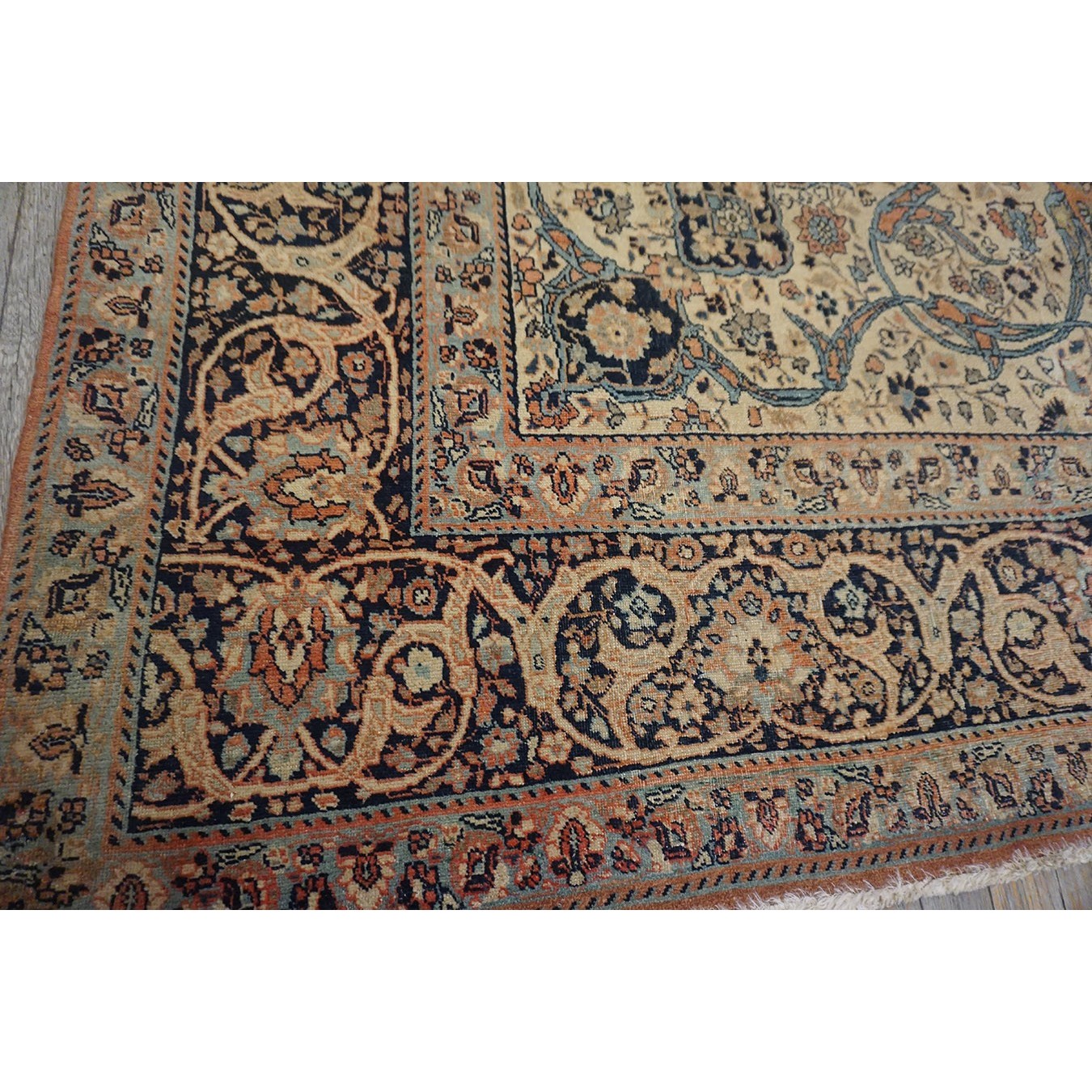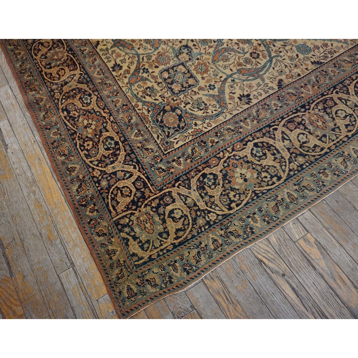 DescriptionTabrizTabriz is the seat of Persian Azerbaijan Province, a large industrial and commercial city with a long history as a past national capital and as an artistic center. The weaving industry was revived there in the 19th century and is carried out in factories where rugs are closely supervised. Quality control is a feature of Tabriz pieces and various grades up to very fine, extremely large carpets may be had. When the colors have mellowed and condition is good, they are extremely valuable and popular with decorators every where. Medallion and overall patterns are woven equally successfully. Silk carpets were popular from this area before 1930 and a few are still made. Sizes range from 2 x 3 to ones 20 x 30. Prices are moderate for the lower grades and upwards. | |