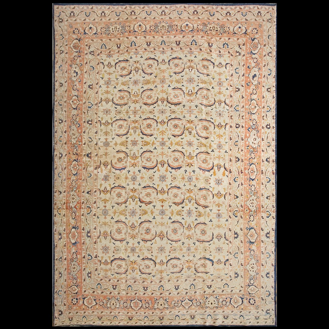 DescriptionTabrizTabriz is the seat of Persian Azerbaijan Province, a large industrial and commercial city with a long history as a past national capital and as an artistic center. The weaving industry was revived there in the 19th century and is carried out in factories where rugs are closely supervised. Quality control is a feature of Tabriz pieces and various grades up to very fine, extremely large carpets may be had. When the colors have mellowed and condition is good, they are extremely valuable and popular with decorators every where. Medallion and overall patterns are woven equally successfully. Silk carpets were popular from this area before 1930 and a few are still made. Sizes range from 2 x 3 to ones 20 x 30. Prices are moderate for the lower grades and upwards. | |