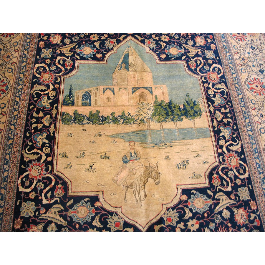 DescriptionTabrizTabriz is the seat of Persian Azerbaijan Province, a large industrial and commercial city with a long history as a past national capital and as an artistic center. The weaving industry was revived there in the 19th century and is carried out in factories where rugs are closely supervised. Quality control is a feature of Tabriz pieces and various grades up to very fine, extremely large carpets may be had. When the colors have mellowed and condition is good, they are extremely valuable and popular with decorators every where. Medallion and overall patterns are woven equally successfully. Silk carpets were popular from this area before 1930 and a few are still made. Sizes range from 2 x 3 to ones 20 x 30. Prices are moderate for the lower grades and upwards. | |