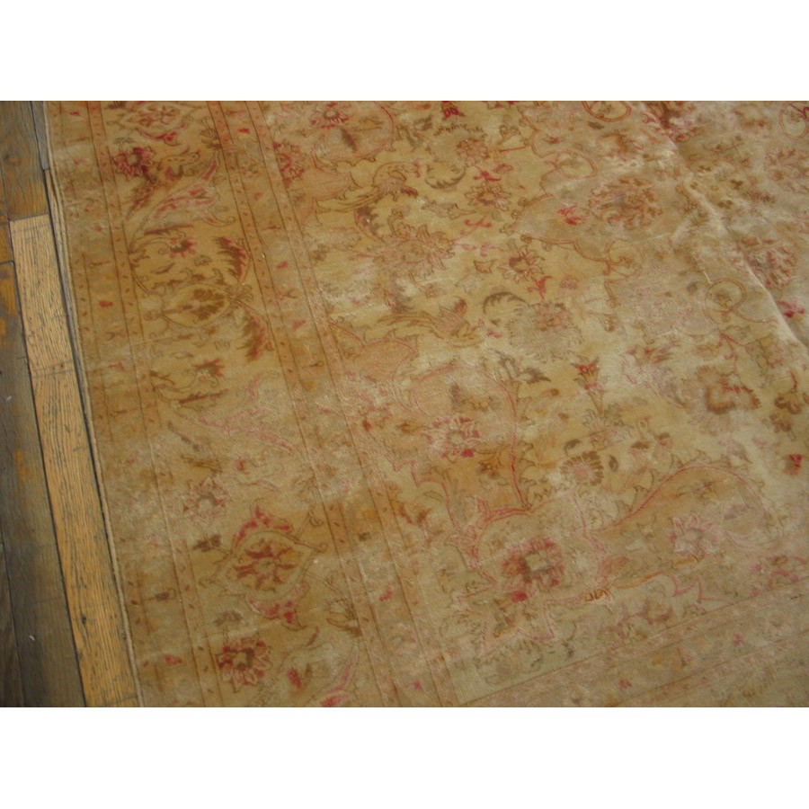 DescriptionTabrizTabriz is the seat of Persian Azerbaijan Province, a large industrial and commercial city with a long history as a past national capital and as an artistic center. The weaving industry was revived there in the 19th century and is carried out in factories where rugs are closely supervised. Quality control is a feature of Tabriz pieces and various grades up to very fine, extremely large carpets may be had. When the colors have mellowed and condition is good, they are extremely valuable and popular with decorators every where. Medallion and overall patterns are woven equally successfully. Silk carpets were popular from this area before 1930 and a few are still made. Sizes range from 2 x 3 to ones 20 x 30. Prices are moderate for the lower grades and upwards. | |