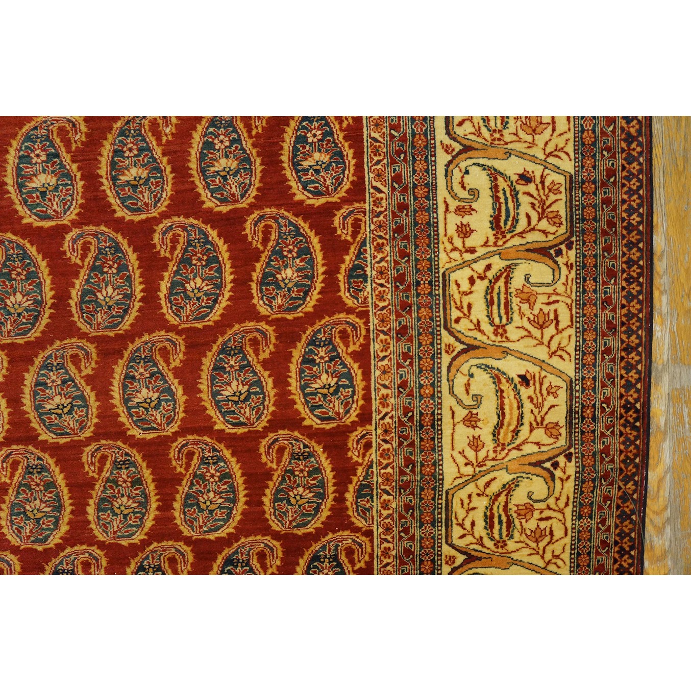 DescriptionTabrizTabriz is the seat of Persian Azerbaijan Province, a large industrial and commercial city with a long history as a past national capital and as an artistic center. The weaving industry was revived there in the 19th century and is carried out in factories where rugs are closely supervised. Quality control is a feature of Tabriz pieces and various grades up to very fine, extremely large carpets may be had. When the colors have mellowed and condition is good, they are extremely valuable and popular with decorators every where. Medallion and overall patterns are woven equally successfully. Silk carpets were popular from this area before 1930 and a few are still made. Sizes range from 2 x 3 to ones 20 x 30. Prices are moderate for the lower grades and upwards. | |