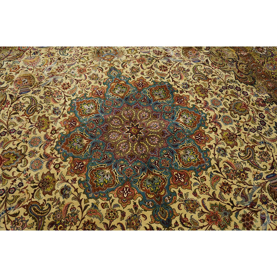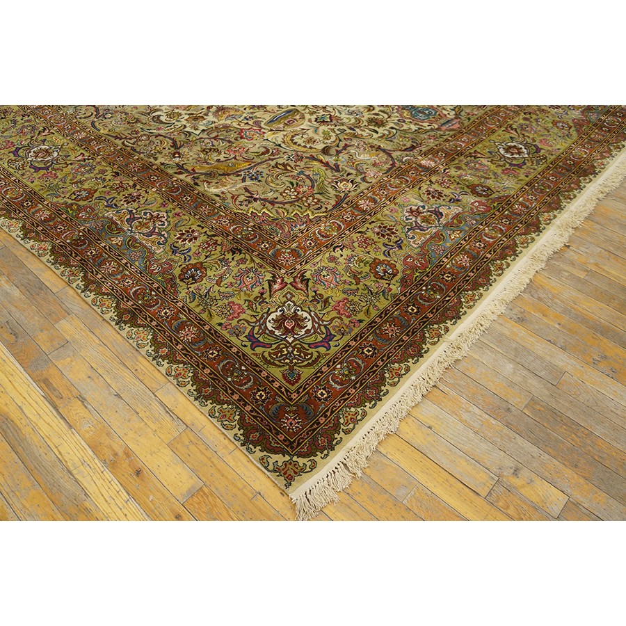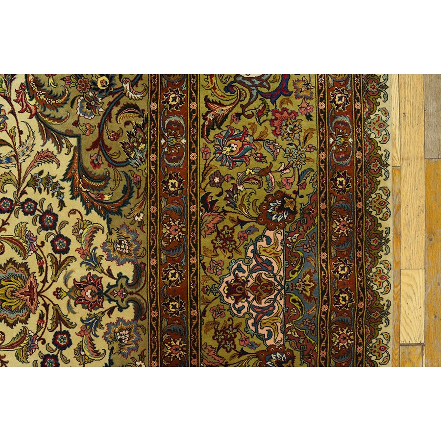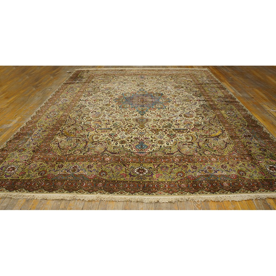 DescriptionTabrizTabriz is the seat of Persian Azerbaijan Province, a large industrial and commercial city with a long history as a past national capital and as an artistic center. The weaving industry was revived there in the 19th century and is carried out in factories where rugs are closely supervised. Quality control is a feature of Tabriz pieces and various grades up to very fine, extremely large carpets may be had. When the colors have mellowed and condition is good, they are extremely valuable and popular with decorators every where. Medallion and overall patterns are woven equally successfully. Silk carpets were popular from this area before 1930 and a few are still made. Sizes range from 2 x 3 to ones 20 x 30. Prices are moderate for the lower grades and upwards. | |