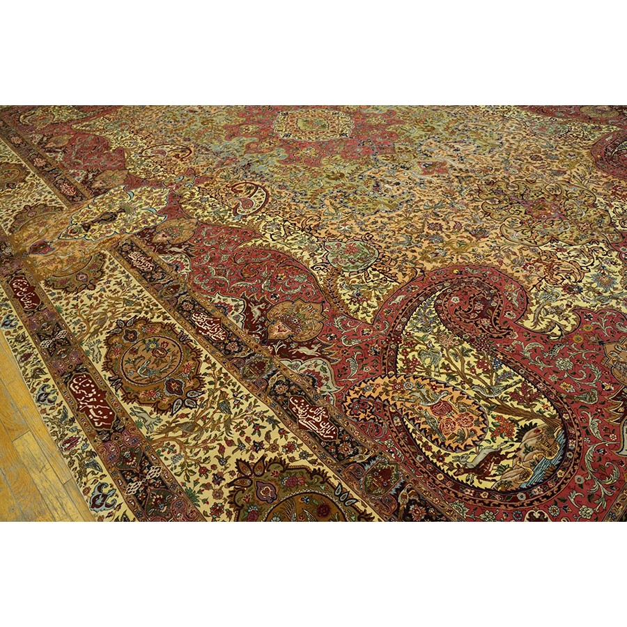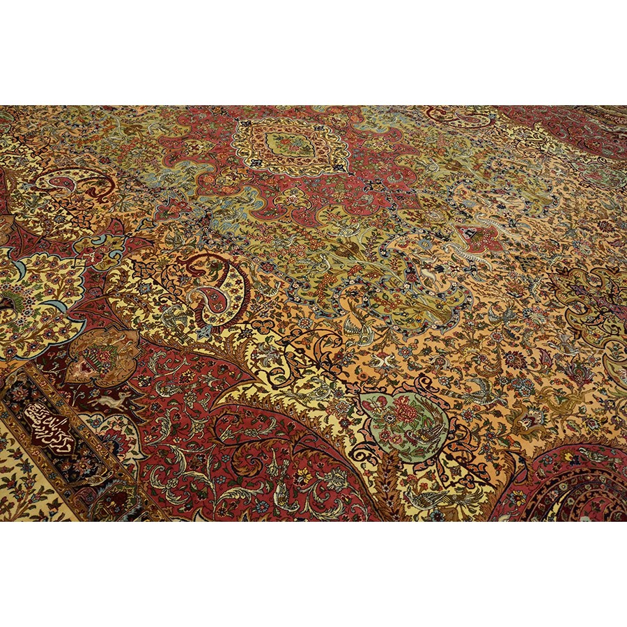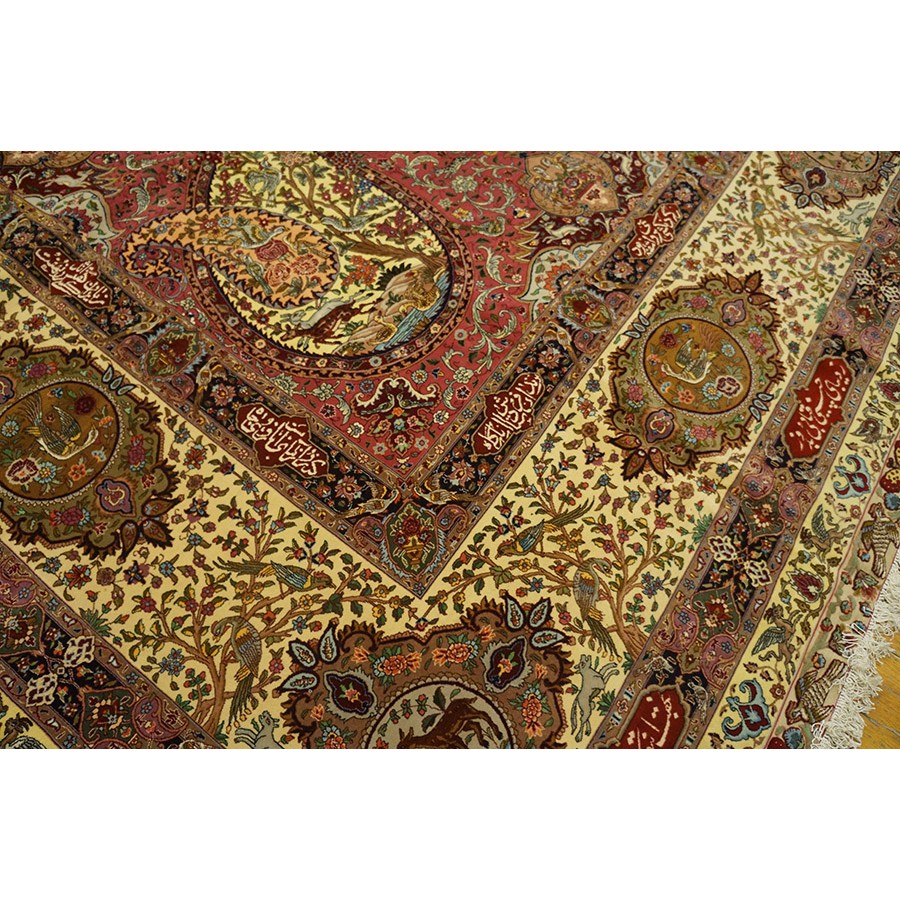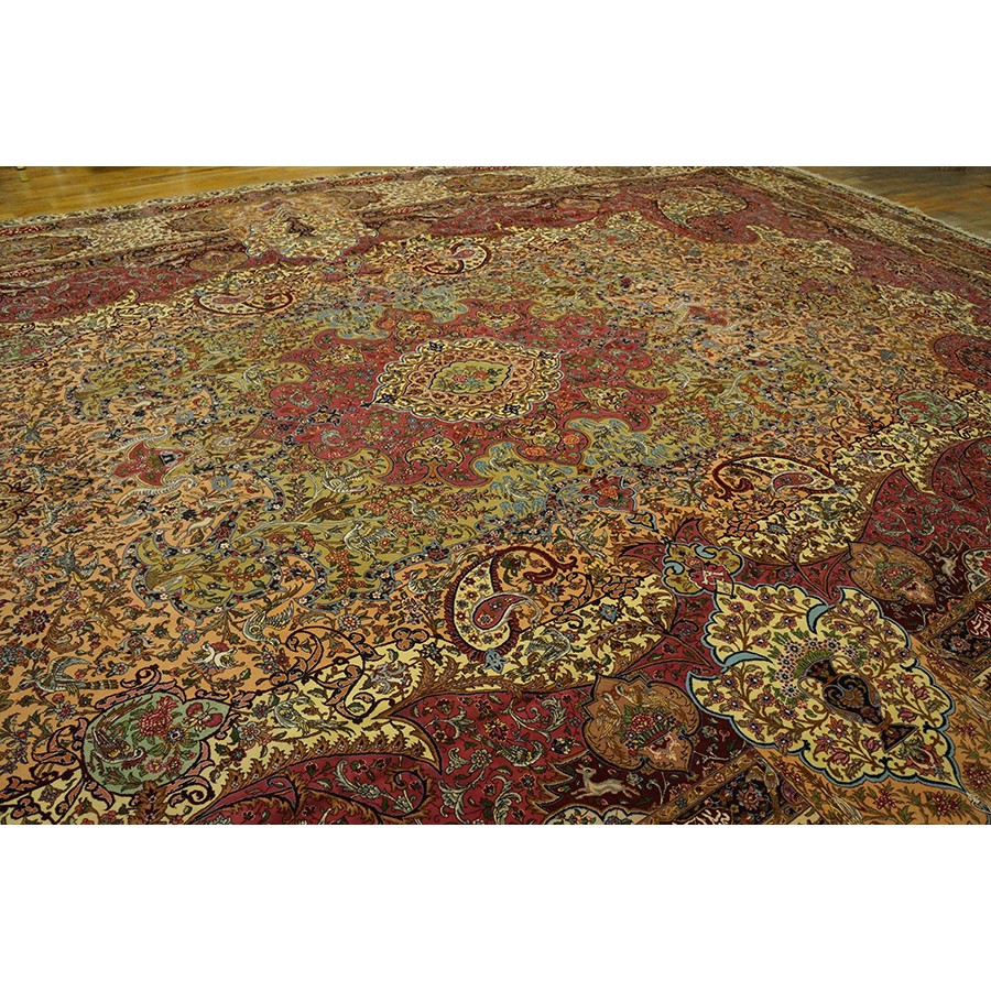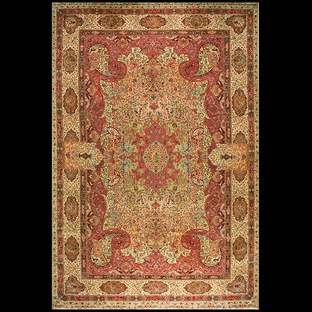 DescriptionTabrizTabriz is the seat of Persian Azerbaijan Province, a large industrial and commercial city with a long history as a past national capital and as an artistic center. The weaving industry was revived there in the 19th century and is carried out in factories where rugs are closely supervised. Quality control is a feature of Tabriz pieces and various grades up to very fine, extremely large carpets may be had. When the colors have mellowed and condition is good, they are extremely valuable and popular with decorators every where. Medallion and overall patterns are woven equally successfully. Silk carpets were popular from this area before 1930 and a few are still made. Sizes range from 2 x 3 to ones 20 x 30. Prices are moderate for the lower grades and upwards. | |