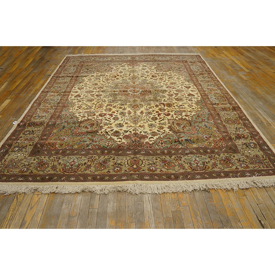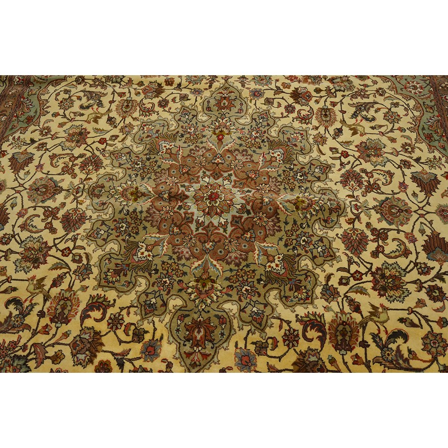 DescriptionTabrizTabriz is the seat of Persian Azerbaijan Province, a large industrial and commercial city with a long history as a past national capital and as an artistic center. The weaving industry was revived there in the 19th century and is carried out in factories where rugs are closely supervised. Quality control is a feature of Tabriz pieces and various grades up to very fine, extremely large carpets may be had. When the colors have mellowed and condition is good, they are extremely valuable and popular with decorators every where. Medallion and overall patterns are woven equally successfully. Silk carpets were popular from this area before 1930 and a few are still made. Sizes range from 2 x 3 to ones 20 x 30. Prices are moderate for the lower grades and upwards. | |