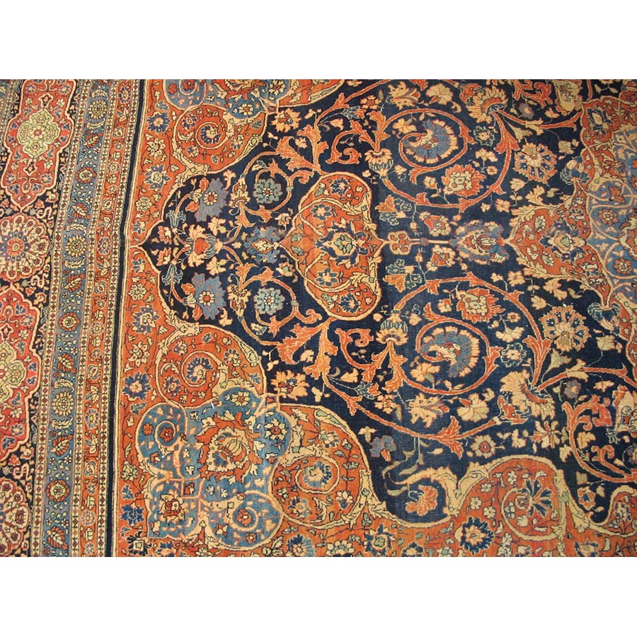 DescriptionTabrizTabriz is the seat of Persian Azerbaijan Province, a large industrial and commercial city with a long history as a past national capital and as an artistic center. The weaving industry was revived there in the 19th century and is carried out in factories where rugs are closely supervised. Quality control is a feature of Tabriz pieces and various grades up to very fine, extremely large carpets may be had. When the colors have mellowed and condition is good, they are extremely valuable and popular with decorators every where. Medallion and overall patterns are woven equally successfully. Silk carpets were popular from this area before 1930 and a few are still made. Sizes range from 2 x 3 to ones 20 x 30. Prices are moderate for the lower grades and upwards. | |