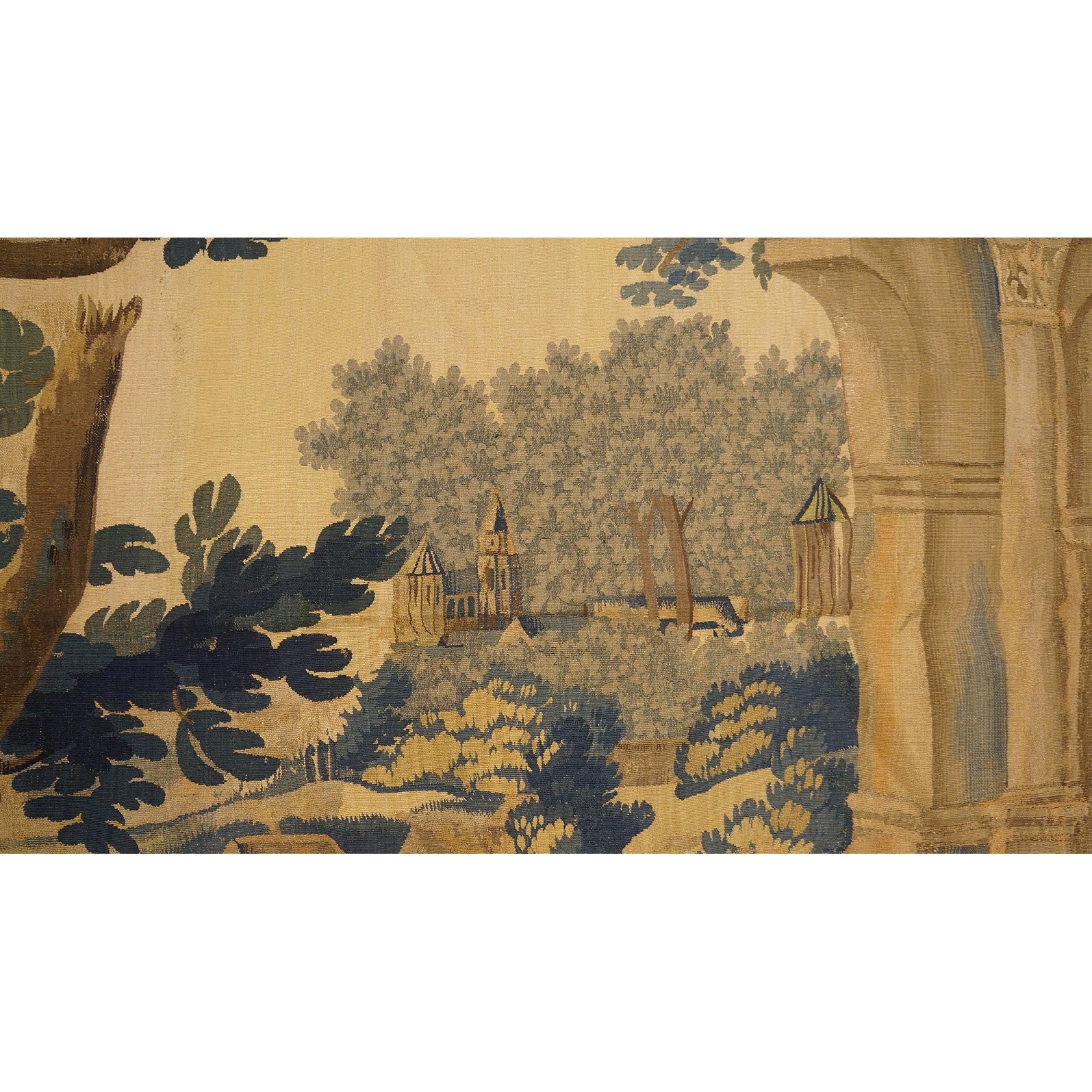 DescriptionTapestryTechnically, any neff patered fabric in which the discontinuous wefts are separated by slits, or are joined by warp sharing or weft interlocking. In this broad sense, a tapestry could be Turkish (kilim), Chinese (silk Kesi), Peruvian, Navaho. Indian (Dhurrie),etc. More precisely as an art form it refers to European wall hangings made in that technique from court and commercial workshops from Flanders to France, Italy, Germany, England and Spain, from the 14th century onward. Pictorial subjects predominate in period pieces, but some are abstract armorials. Modern tapestry designs are often by major artists and are adapted from pre-existing paintings. Traditionally, the subjects have been narrative (mythological, historical, religious) on descriptions (landscapes). The subject is vast, the price range equally so, from decorative up to highly important period works of cut. Carpets are made in tapestry weave see Aubusson. Bessarabian entries. See also Tapestry- Flemish, French, Verdure. | |