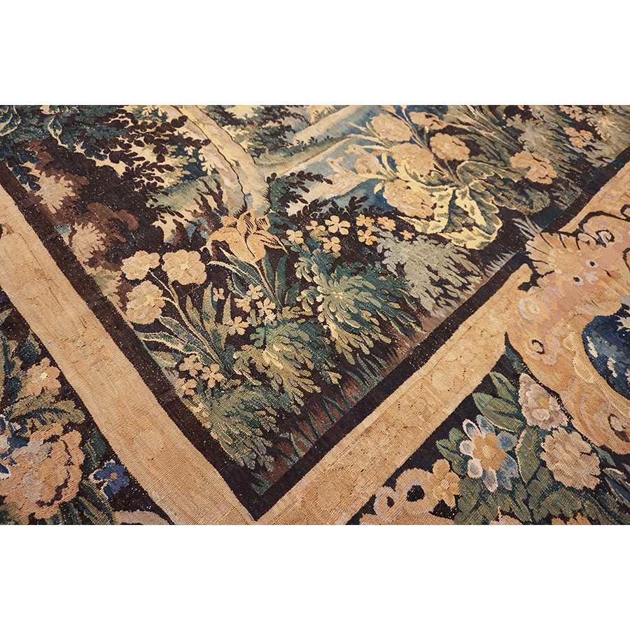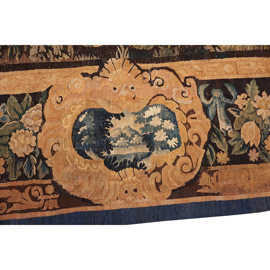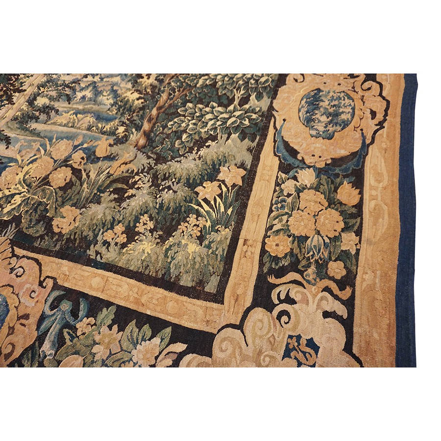 Overall, this is a well- designed and executed decorative verdure with good colours and unusual border touches from the best period of Beauvais weaving.