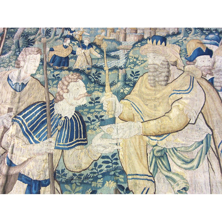 DescriptionTapestryTechnically, any neff patered fabric in which the discontinuous wefts are separated by slits, or are joined by warp sharing or weft interlocking. In this broad sense, a tapestry could be Turkish (kilim), Chinese (silk Kesi), Peruvian, Navaho. Indian (Dhurrie),etc. More precisely as an art form it refers to European wall hangings made in that technique from court and commercial workshops from Flanders to France, Italy, Germany, England and Spain, from the 14th century onward. Pictorial subjects predominate in period pieces, but some are abstract armorials. Modern tapestry designs are often by major artists and are adapted from pre-existing paintings. Traditionally, the subjects have been narrative (mythological, historical, religious) on descriptions (landscapes). The subject is vast, the price range equally so, from decorative up to highly important period works of cut. Carpets are made in tapestry weave see Aubusson. Bessarabian entries. See also Tapestry- Flemish, French, Verdure. | |