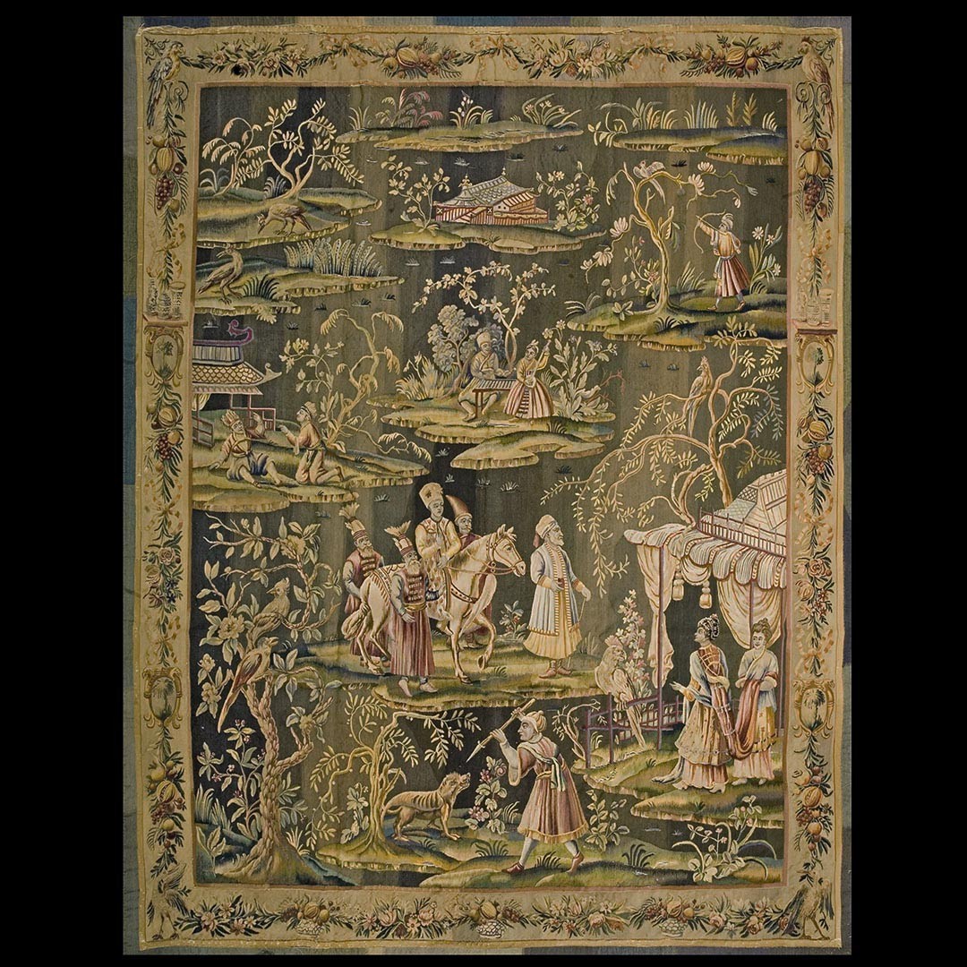 DescriptionTapestryTechnically, any neff patered fabric in which the discontinuous wefts are separated by slits, or are joined by warp sharing or weft interlocking. In this broad sense, a tapestry could be Turkish (kilim), Chinese (silk Kesi), Peruvian, Navaho. Indian (Dhurrie),etc. More precisely as an art form it refers to European wall hangings made in that technique from court and commercial workshops from Flanders to France, Italy, Germany, England and Spain, from the 14th century onward. Pictorial subjects predominate in period pieces, but some are abstract armorials. Modern tapestry designs are often by major artists and are adapted from pre-existing paintings. Traditionally, the subjects have been narrative (mythological, historical, religious) on descriptions (landscapes). The subject is vast, the price range equally so, from decorative up to highly important period works of cut. Carpets are made in tapestry weave see Aubusson. Bessarabian entries. See also Tapestry- Flemish, French, Verdure. | |